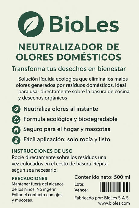🌱 Neutraliza olores de desechos♻️ 100% ecológico y biodegradable🏠 Seguro para el hogar y mascotas🧴 Fácil de aplicar: solo rocía y listo🛒 Precio accesible